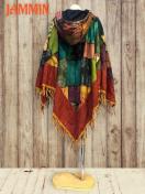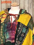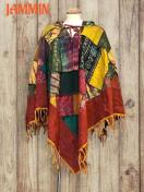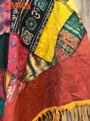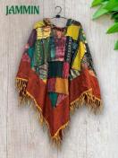 色々な柄生地(オーム、ヒンディ語、植物、タイダイ、モン族刺繍柄など)を使ったパッチワークフリンジポンチョです。