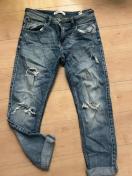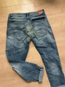 ダメージ加工が施されたブルーデニム、ZARABASIC Z1975DENIMモデル、サイズ34/28。