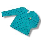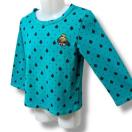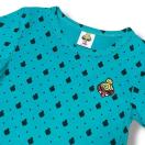 綺麗なエメラルドグリーン地にミニちゃんフェイスのシルエットとドット総柄プリント
