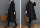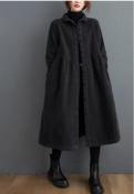 コーデュロイ ロング丈 前開き 裏起毛 コート アウター ブラック 大きいサイズ