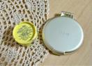 手鏡は未使用で、傷などありませんが、購入当初からミラーを開けたお花柄の部分に黒い点がついています。(最後の画像で確認お願いします。)