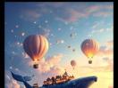 幻想的な空を旅するクジラと気球を描いた大人っぽいアートデザインです。落ち着いたカラーでコーディネイトしやすく普段着にも特別なお出かけにも合わせやすい1枚。