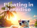 サングラスをかけたシロクマが浮き輪でぷかぷか。まるで楽園にいるようなリラックス気分を届けてくれます。ゆるくて可愛いイラストながらシンプルでおしゃれに着こなせる一枚。