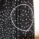 写真6枚目、ヒップ横辺りに汚れがありました。プリーツで隠れてほとんど分からない程度ですが、気になる方はご購入をお控えくださいませ。