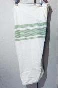 クリームイエローの地色に上部のみくすんだグリーン系の横縞が配色されたデザイン