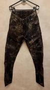 カラーはブラックカーキ。クラッシュ部分にはスネーク&ゴートレザーが使われておりオーバーロックステッチ等着用時のシルエットもかっこいいパンツです。