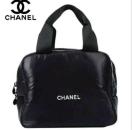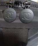CHANELのブラックポーチ、ダブルジッパー付きで使いやすいデザイン。