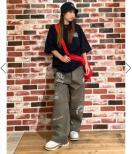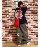 ジョガーパンツやストレートパンツなどのベーシックな合わせはもちろん、ルーズなデニムパンツやワイドカーゴパンツなどと合わせたストリートスタイルもおすすめ。
