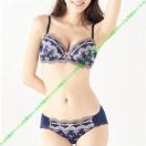 美しい食器を想像させる繊細な線画調レースとリボン通しのコントラストが華やかな印象のブラジャーショーツセット。