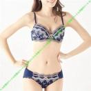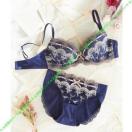 【送料無料】新品 トリンプ かわいいリボンの3/4カップブラ&ショーツ E75-L ネイビー×ラベンダー