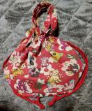 赤色の生地にいろんなアニマル柄の大きめ巾着布バックです。