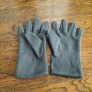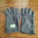 フリース素材のグレーの5本指手袋、手首に留め具付き。