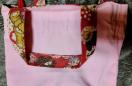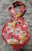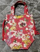 赤色の生地に可愛いアニマル柄の布巾着バックです。