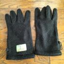 フリース素材の5本指手袋、手首調整ストラップ付きで暖かさをキープ。