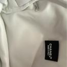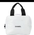 CHANELのホワイトポーチ、ダブルジッパー付きで使いやすいデザイン。
