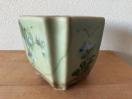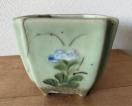 緑色の花柄デザインの陶器製四角形植木鉢。