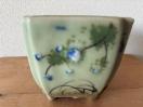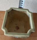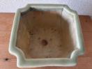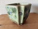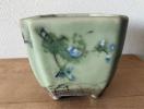 時代 古瀬戸 青磁 隅入 正方 足付 植木鉢 盆栽鉢 草花図 万年青 蘭鉢 植木鉢 盆栽道具 園芸道具