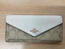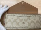 エンベロープスタイルのCOACH長財布、外側にファスナーポケット付き。