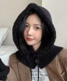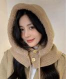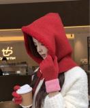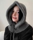 フード付きネックウォーマーが一体になったバラクラバタイプの防寒ニット帽です