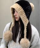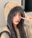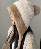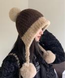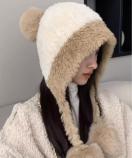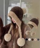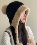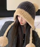 寒さ対策帽おしゃれ/配色ぼうしお出掛け/耳あったかグッズ冬