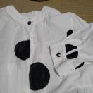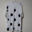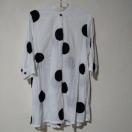 白地に黒の大きな水玉刺繍チュニック丈ブラウス、軽量で通気性が良く、リラックスした着心地。