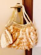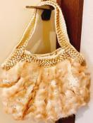 一粒のビジューがついたミニポーチ付き、中はドット柄、持ち手はゴールドと、かわいい&ゴージャスなcache cacheのファーバッグ