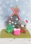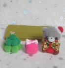 ポンポンで作ったくまさんとミニツリー・プレゼント、台座の4点セット!