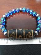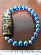 オーラ水晶、テラヘルツ、蓮師法器天珠。天珠はこちらで購入した、焼き付け時間の長いタイプのものです。サイズ調整不可。