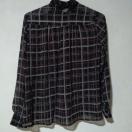 昭和レトロ ブラックチェック柄の長袖ブラウス、スタンドカラーでエレガントな印象。