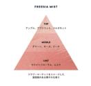 アップルやアプリコットのフルーティーな香りに、透明感のあるグリーンや上品なローズなどを組み合わせた「FREESIA MIST」は、SHIRO PERFUMEで最も人気が高い香りです。