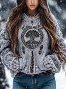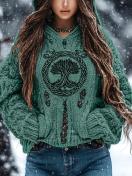 エレガント フード付きセーター | ソフトな手編み 生命の樹、カジュアル プルオーバー、オールシーズン快適 ギフト