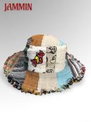色々な織り柄生地や麻生地を使ったパッチワークハットです。