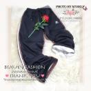 ┗黒とレオパード柄が際立つ3本線の裏起毛スウェットパンツ