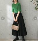 裾に向かって広がり、ウエスト周りはすっきり見えを叶えるサーキュラースカート。