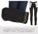 裏起毛とデニム生地を貼りつけた二重仕様。しっかりとしたやや硬めのデニム生地。戻りの強いストレッチ素材でしっかりと引き締めるので、裏起毛パンツ特有の着膨れ感が少ないのも嬉しい◎。
