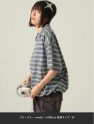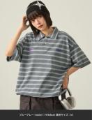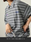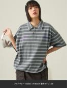 ビッグシルエット ロゴ刺繍 ボーダー半袖ラガーポロシャツ