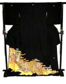 ・京都 染匠 京友禅【久保耕】手描き 本金箔 御所車文 比翼付の