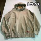 ベージュのDickiesパーカー、Lサイズ、フロントロゴとバックメッセージ付き。