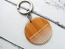 ★お色見は、モチーフ部分が明るいブラウン系(ウッドの素材の色)で、ロゴとドット柄はホワイトです。 ★キーリングと金具はシルバーカラーです。