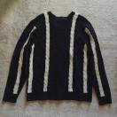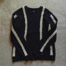 ┗太ストライプ柄バイカラーが縦長効果でスッキリして見えます♪天然素材毛ウール混で暖かい♪ケーブル編みや格子ダイヤ柄など編み方がとても凝ってます♪ストライプ部分は編み混んでるのではなくホワイトニット生地を上から重ねて縫い合わせた、とてもお洒落なデザインです☆丸首ラウンドネックなのでインナーにシャツやタートルネックやクルーネックTシャツを重ね着して衿をチラ見せするとお洒落でおすすめです♪HAREの縦ストライプが凝ってて、お洒落可愛い長袖ウールニットセーターです☆