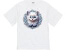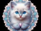 澄んだブルーの瞳が印象的な子猫と、ブルー系の曼荼羅の組み合わせが爽やかさを感じさせます。