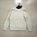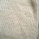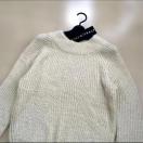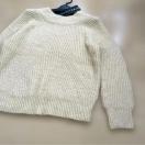 クリーム色のラウンドネックニットセーター、リブ編みデザインで温かみがあります。