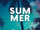 南国リゾートの雰囲気を感じさせる、おしゃれなサマーパーティーデザインTシャツです。