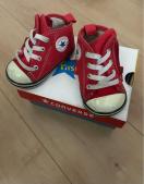 赤いファスナー付きのベビーシューズ、CONVERSEのBABY ALL STAR N Zモデル。
