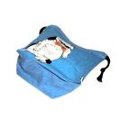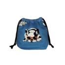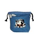 ・底マチ幅を広くとってるので紐を締めるとまるっこくなってかわいいです。底マチと紐通し部分はブルー無地をあわせました。
