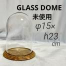 未使用 縦長 大型 ガラスドーム ガラスケース 木製台 高さ約23cm B