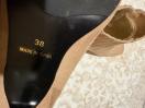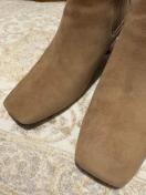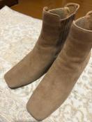 昨年、店頭で24,000円で購入。薄いベージュ系、24センチ。当方は普段23.5センチですが、ブーツ系は、タイツや靴下を履くことも考えて、敢えて24センチを購入しています。購入時の箱ございます。サイドのゴムがしっかりしているので、履いていて足がプカプカしません。お出かけ時に一回数時間の着用、綺麗な状態です。購入後、汚れがつきにくいよう防水スプレーもかけていただいてます。スカート、パンツ、デニムどれにも合います。色合いが上品で、デニム合わせでカジュアルに履いてもハードな印象になりません。寒さの残る春先まで履いていただけます。スニーカーにハマっており、履く予定がないため、状態の良いうちにと出品しました。お探しの方、購入を検討している方いかがでしょうか。定形外かゆうパック発送予定、お手続きの際にお打ち合わせいたします。購入時の箱はありますが、箱なしの方が送料はお安くなります。ノークレームノーリターンでお願いします。 -