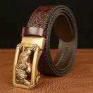 【メンズ】ヴィンテージ風 カウハイド ベルト オートマチックバックル - 鮮やかなトラ柄、ゴールドトーンの金具、丈夫なレザーテクスチャ - ジーンズ、作業パンツ、カジュアルウェアに - ユニークな唐草模様、ジーンズ用ベルト、作業着アクセサリー