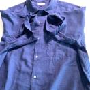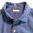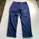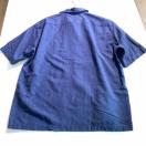 ネイビーの麻混合、半袖シャツとパンツのセット、XLサイズ、胸ポケット付き。