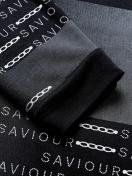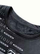メンズ ゴシックレタープリント 大きめサイズのラウンドネックスウェットシャツ - ソフトストレッチ生地、ブラック&ホワイトカジュアルプルオーバーセーター(日常着・ジム・フォーマルイベント用)- 洗濯機対応男性へのギフト (キリスト教信仰にインスパイアされたデザイン「Saved」& 「Jesus」の文字入り)